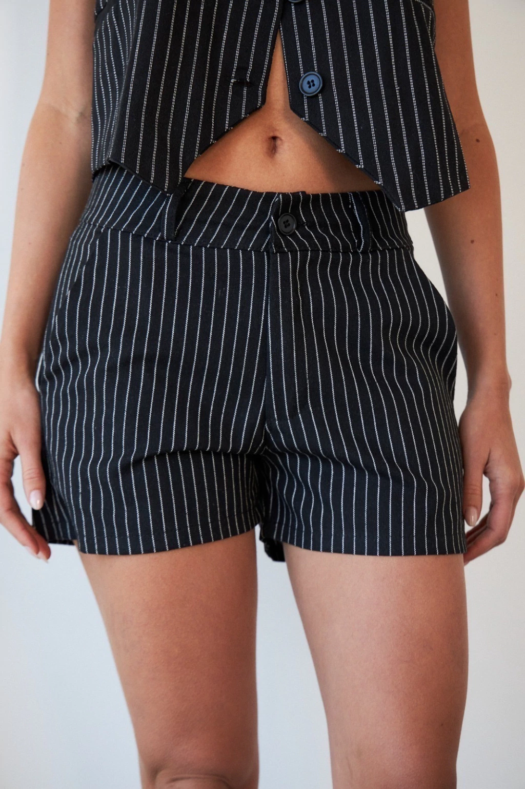 Short tiro medio/alto, corte recto y terminación sencilla que estiliza la silueta; cuenta con bolsillos laterales funcionales, pasadores para cinturón y un práctico cierre frontal con botón y cremallera